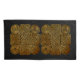 An intricate Celtic knotwork cross with eternal spirals and trinity knots in black and gold.