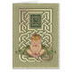 A soft green background with a traditional Celtic knot ornament, a cute baby fairie with butterfly wings sitting in front. A cute fantasy collectors card, customizable with your own text.