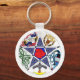 Celtic motifs surrounding a five pointed star represent the four elements + man