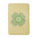 This classic four leaf clover overlays a concentric circle design featuring layers of Celtic weaves in multiple shades of green with a bit of orange for accent.