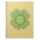 This classic four leaf clover overlays a concentric circle design featuring layers of Celtic weaves in multiple shades of green with a bit of orange for accent. Three background colours have been provided with the yellow version currently shown.