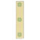 This classic four leaf clover overlays a concentric circle design featuring layers of Celtic weaves in multiple shades of green with a bit of orange for accent.