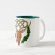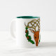 A stag's head with intertwined antlers and a wreath of oak leaves and acorns