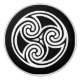 PH in an ancient Celtic triskele / triskelion pattern, or triple Archimedean spiral, in white on a black background