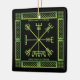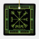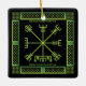 Celtic Vegvisir square ornament. Celtic Vegvisir is a Celtic and Germanic design created by Anna M. Asbury and consists of a black background with a vegvisir and the Elder Futhark Runes in the center and bordered by Celtic knots.