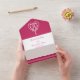 Bring touch of elegance to your event with this all-in-one wedding invitation and RSVP card. On the inside you will find a white Celtic weave heart on a bright raspberry background above a section with some sample text that can be customized for your special day. The lower section of the invite features a removable, postcard sized piece that has some sample RSVP text sitting above a raspberry pink border with a Celtic weave pattern made up of intertwined hearts decorating the bottom. Outside, a similar Celtic weave border on raspberry can be found below the areas where you would add stamps, standard, and return addresses for both the invitation as a whole and the returnable RSVP section. The flap used to fold over and seal the card has the larger Celtic weave heart on a bright pink background with a sample set of initials that you can customize for a final personal touch. Be sure to check out the rest of the Celtic Weave Hearts in Raspberry set for other coordinating products, including return address labels.