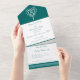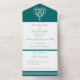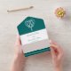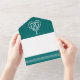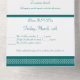 Bring touch of elegance to your event with this all-in-one wedding invitation and RSVP card. On the inside you will find a white Celtic weave heart on a rich teal background above a section with some sample text that can be customized for your special day. The lower section of the invite features a removable, postcard sized piece that has some sample RSVP text sitting above a teal border with a Celtic weave pattern made up of intertwined hearts decorating the bottom. Outside, a similar Celtic weave border on teal can be found below the areas where you would add stamps, standard, and return addresses for both the invitation as a whole and the returnable RSVP section. The flap used to fold over and seal the card has the larger Celtic weave heart on a rich teal background with a sample set of initials that you can customize for a final personal touch. Be sure to check out the rest of the Celtic Weave Hearts in Teal set for other coordinating products, including return address labels.