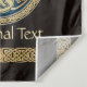 Richly intertwined Celtic knots creating the shape of a wolf and surrounded by a wreath of knots, in turn framed in more intricate patterns. A great piece of culture, history and heritage, all over a background of dark brown (chocolate) simulated old leather.