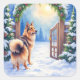 Central Asian Shepherd Snowy Gate Christmas Art Square Sticker