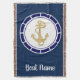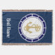 Central Golden Anchor Navy Blue Nautical Throw Blanket