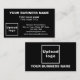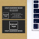 Centre aligned style black business card for your customers or clients to easily find your business address and contact information. Customize it by uploading your business logo, typing your business name, your name, your title, address, phone number, e-mail and website or social media page. Please check the appearance of the front and back sides after uploading logo and typing texts. If the appearance is pleasing to you, you can place your order now. If you need to resize or reposition the logo and texts, please adjust in the design tool. You can also change the background colour, font colour and font style in the design tool.