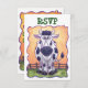 Animal Parade Cute Cow Personnalisé Les cartes RSVP personnalisées sont pour le côté amusant de vous avec notre art original d'une vache blanche et noire lunatique debout dans un champ herbacé avec un ciel jaune, orange et une bordure violette ondulée ludique. Peint par Traci Van Wagoner, notre artiste talentueux pour enfants, notre matériel de fête à thème animal de ferme est parfait pour les amateurs de vaches de tous âges. Sur un grand nombre de nos vêtements fantaisistes, vous verrez la vache mignonne aller et venir avec cette oeuvre amusante de la tête de la vache mignonne sur le devant et la queue de la vache Holstein sur le dos. Rejoignez la Parade des animaux et jetez un bain rempli d'animaux à votre enfant avec nos soirées d'anniversaire sur le thème de la vache à queue et têtes amusantes. Pour démarrer votre fête, envoyez une invitation à tous les amis de votre enfant qu’ils ne peuvent refuser. Passez un moment de moo-extraordinaire !