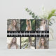 Modern graduation party invitation and announcement in chic black features six of your favourite photos aligned side by side in two rows, with "graduate" displayed at the centre in elegant grey-blue lettering. Personalize with your name, school and graduation year on a sheer white stripe overlay. Cards reverse to wide striped pattern in bold black and white framing your graduation party details, including timing, venue and RSVP information. An elegant and modern choice for 2017 graduates.