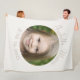 Circular image placement with arched script name and serif date in drift taupe, set against an ivory background. This fleece layout blends soft tones with a centred design that highlights meaningful visuals in a subtle, neutral format.
