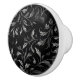 This ceramic cabinet knob is shown in a black and white multi vine leaves print.
