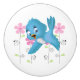 This ceramic cabinet knob is shown in white with a cute blue bird and pink flowers print.