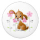 This ceramic cabinet knob is shown in white with a cute puppy dog and pink flowers print.