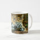 Ceramic coffee mug shown with a photo print of a beautiful leopard print. Customize this item or buy as is. Stock Image