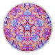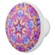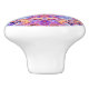 This unusual ceramic drawer knob, has a kaleidoscope circle design with a star in the centre surrounded by five tulip shapes. Colours are light blue, dark red, lavender, a touch of yellow, pink, and white.