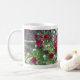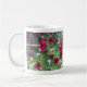 This mug sports a photograph of deep red petunias blossoming in their fiery beauty.