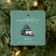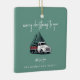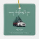 A festive Christmas tree ceramic ornament featuring the cheerful heading “Merry Christmas to you” in modern handwritten white script typography paired with a vintage-inspired Christmas tree delivery truck graphic. Designed on a forest green background, this stylish retro decoration combines nostalgic charm with a modern minimalist layout. Personalize the “with love from” section and underneath with your family name in complementary typography for a warm, custom touch. Perfect for decorating your tree, this fun and classic design adds personality to your home decor while spreading festive joy. A timeless Christmas ornament ideal for families, small businesses, or seasonal gifting.