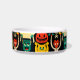 This is a heavy, durable bowl decorated with Tibbies of many colors, the perfect size for hungry/thirsty Tibs. The design is interesting and printing clear.