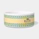 Customizable pet bowl with yellow and green background with beer mug trim.