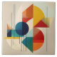 A bold and vibrant geometric abstract design inspired by the Bauhaus movement, featuring clean lines, intersecting shapes, and a harmonious balance of color. Deep blues, golden yellows, and warm reds combine to create a striking visual composition that celebrates simplicity and structure.