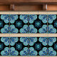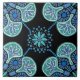 This dramatic accent tile has a delicate medallion pattern. The Tile repeats, get a few to put together for a focal point in your kitchen Backsplash. The colours include teal, cerulean and cornflower on a black background. Use this on your kitchen backsplash, bathroom or fireplace. It's perfect for your country cottage or farmhouse. This design comes from Oregon tile maker Fay Jones Day.