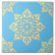 Ceramic tile, yellow medallion on Cerulean blue Tile