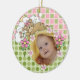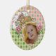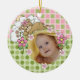 Vous pouvez ajouter votre choix de texte et la photo de votre bébé à ce ornement personnalisable de bébé avec un ours en peluche et des fleurs roses!