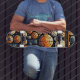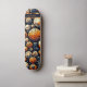 Frappez le patin avec ce design audacieux et futuriste qui présente des motifs circulaires complexes dans les tons orange, blanc et gris sur un arrière - plan bleu marine pour créer un effet de mosaïque abstrait. Une plaque d'identification subtile a été ajoutée en haut pour la personnalisation.
