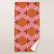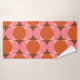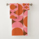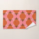 Apportez un style intemporel à votre salle de bain avec cette serviette moderne du milieu du siècle avec des cercles d'orange géométrique audacieux et des demi-cercles roses sur un arrière - plan rouge foncé et carré clair. Le design d'inspiration rétro apporte une touche d'élégance abstraite et de personnalité vibrante, parfaite pour créer un décor de salle de bains élégant et unique.
