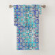 Ensemble de serviette dans une conception moderne de la moitié du siècle basée sur le motif de verrouillage classique de cercles - médias mélangés graphiques aux nuances du bleu, de l'aqua et du blanc sur un fond clair de gris argenté