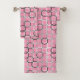 Ensemble de serviette dans une conception moderne de la moitié du siècle basée sur le motif de verrouillage classique de cercles - médias mélangés graphiques aux nuances de gris/de gris, noires et blanches sur un arrière - plan rose de corail doux