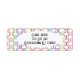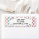 Ces étiquettes d'adresse de retour ont un design art déco de demi-cercles orange, turquoise, rose, bleu, violet et jaune se connectent avec des lignes sur un champ de blanc.
