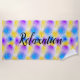 La relaxation est écrite en écriture noire contre un joli tout motif d'éclats de cercles en spirale en bleu, jaune et violet. Conservez le libellé tel quel ou personnalisez-le. Conception originale © TamiraZDesigns.