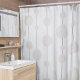 De nombreux cercles de différentes tailles accrochés à des pointillés font le design de ce rideau de douche, les oeuvres d'art sont redimensionnables, amusants!