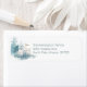 Étiquettes d'adresse de retour sur le thème de Noël, avec de belles aquarelles d'un cerf blanc et de pins, faites dans des couleurs pastel douces. Personnalisez le texte bleu poussiéreux avec vos informations.
