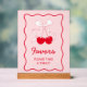 Célébrez votre thème de baby shower cerise avec ce Baby shower cerisier rose rouge personnalisé Favor Acrylique Sign. Parfait pour un thème baby shower sucré aux baies ou des thèmes baby showers de février, ce signe charmant ajoute une touche délicieuse à votre cerise sur le thème du baby shower et célèbre le petit qui est vraiment "elle est la cerise sur le dessus".