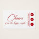 Vous voulez offrir à vos invités un moyen de profiter de plusieurs boissons alcoolisées pendant votre réception ou votre fête sans avoir à vous engager dans un open bar? Ces billets à boire à 3 punch pourraient être idéaux pour vous ! Dans une belle police de script mince et inclinée, la superposition graphique de typographie rouge cerise dit "Cheers from the happy couple". Rotation, à droite et placé entre des lignes rouges minces sont les mots "Rééchanger à la barre"; ce texte est modifiable. Trois cercles numérotés ont été ajoutés à droite pour que vos invités puissent se faire perforer leur carte au bar, qui peut servir jusqu'à trois boissons complémentaires. L'autre côté a des champs modèles configurés pour vos noms et votre date. // 78 // Conçu par Melody Watson pour Paper Muserie.