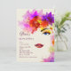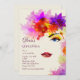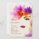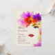 Une invitation renversante comportant une vue partielle du visage d'une femme entouré avec un bon nombre d'éblouissement, fleurs colorées.