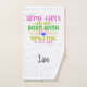 Montrez que les femmes jouent dans le bowling en utilisant cette conception de bowling drôle et moderne sur une serviette à main. Il a la phrase "Certaines filles sont juste nées avec Bowling dans leurs âmes" en rose, or et la typographie verte. Le milieu de l'expression a une boule de bowling bleu entourée de pins de bowling rouge et blanc, Le fond a un nom en script noir typographie qui peut être édité pour vous. Toutes les couleurs de ce design sont modifiables.