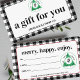 Offrez le cadeau de choix à vos clients et à vos employés en cette période de fêtes avec un pack de cartes cadeaux de Noël personnalisées. Avec un design de plaid de vacances élégant et le message "Un cadeau pour vous de (votre nom d'entreprise)", ces cartes sont la façon parfaite de montrer votre appréciation et votre soutien pour les petites entreprises. Il suffit de télécharger le logo de votre entreprise et de customiser votre message, et nous imprimerons vos certificats-cadeaux sur des cartes de visite de haute qualité qui sont sûrs d'impressionner. Chaque carte peut être échangée contre des biens ou des services dans votre entreprise, ce qui en fait un cadeau polyvalent et pratique pour tous ceux qui figurent sur votre liste. Commandez dès aujourd'hui votre paquet de cartes cadeaux de Noël et faites la joie des petites entreprises en cette période de fêtes !
