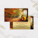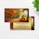 Un beau certificat cadeau d'automne avec l'image d'un paquet dans la forêt. Ce carte de visite offre une belle opportunité d'attirer de nouveaux clients pour une boutique ou une boutique cadeaux.
