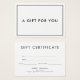 Certificat cadeau moderne minimaliste