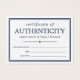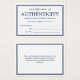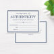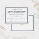 Élégant et minimaliste, certificat d'authenticité en bleu marine et blanc auquel vous pouvez ajouter votre nom ou le nom de votre entreprise.