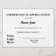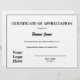 This is a template award for a certificate of appreciation. It has text you can edit to show the recipient's name in an elegant script. You can also edit the other text to customize the award for your occasion and organization. There's a line for the person giving the award to sign on. You can also have that person's name and title printed under the line. A display image is near the bottom that you can replace with your organization's logo. The paper is white. The text is black.