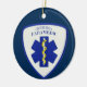 This custom Christmas ornament is decorated on one side with the Certified Paramedic shield. The reverse side is decorated with an image of Santa Claus carrying his bag of goodies, and can be customized with names, dates, etc.