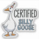 This fun sticker features a goofy goose wearing a party hat with the phrase "Certified Silly Goose." Perfect for anyone who embraces their silly side! This durable vinyl sticker is great for laptops, water bottles, phone cases, and more. Add a touch of whimsy and laughter to your belongings.